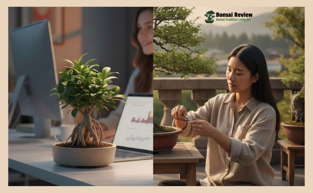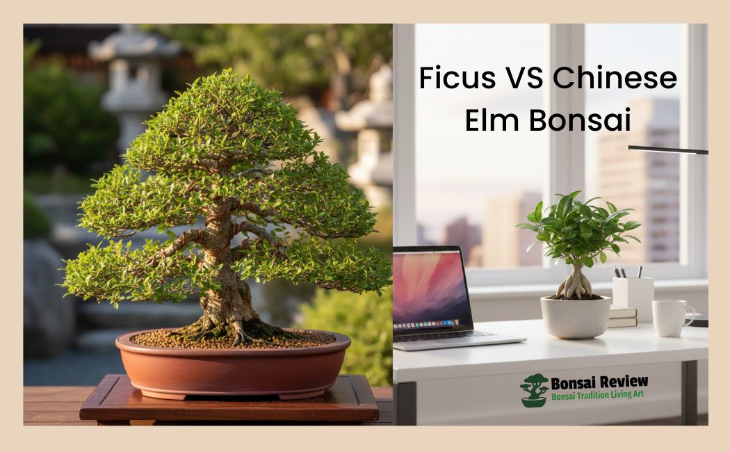 Ficus vs Chinese Elm bonsai is a choice many beginners struggle with. You want a bonsai that looks good and stays alive. You may live in an apartment or work in an office. You may worry about low light or missed watering.